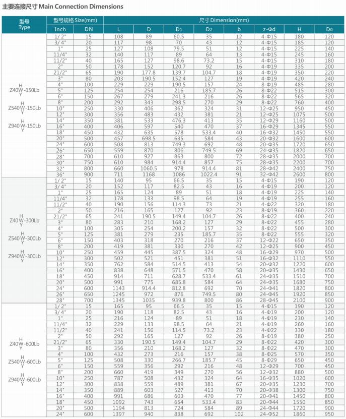 美标鑄鋼閘閥技術參數